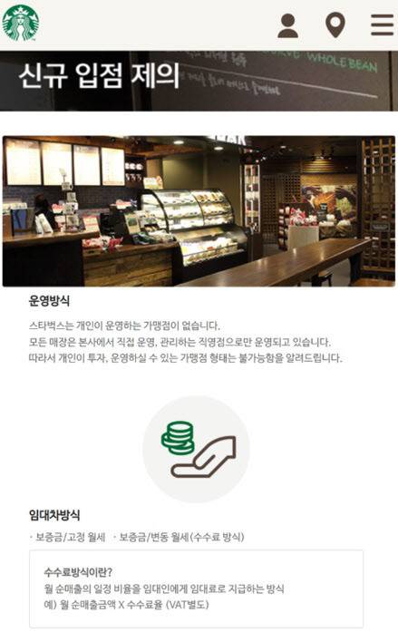 그가 두 번째로 느낀 단점은 임대차 재계약시 발생하는 ‘수수료 후려치기’였다. 현재 스타벅스가 마련한 건물주와의 임대차 계약 조건은 2가지로 나뉜다. ‘고정 임대료’ 방식은 건물주가 매달 정해진 월세를 받도록 하는 것이고, ‘변동 임대료’ 방식을 매장의 매출과 비례해 미리 정해둔 수수료율을 기반으로 계산한 임대료를 지급받도록 하는 형태다. 즉 매장 매출이 오르면 건물주의 월세 수익이 오르지만, 반대로 매출이 떨어지면 건물주도 손해를 보는 구조다. 업계에선 두 계약 방식을 택하는 건물주 비율이 반반 수준인 것으로 알려졌다.
