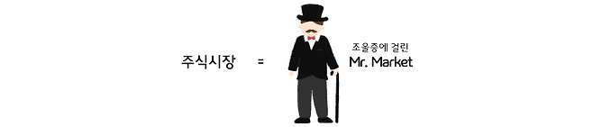그레이엄은 변덕스러운 주식시장을 조울증에 걸린 Mr. Market에 비유했습니다. 매일 'Mr. Market'이 나타나 자신의 주식을 다른 가격에 사거나 팔겠다고 제안합니다. 일반 투자자들은 미스터 마켓에 잘 속기 때문에 돈을 잃습니다.