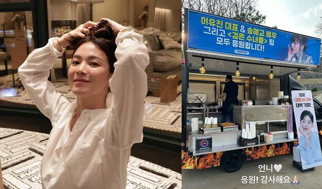 송혜교는 자신의 인스타그램 스토리를 통해 이미연의 커피차 인증 사진을 공개했다.
