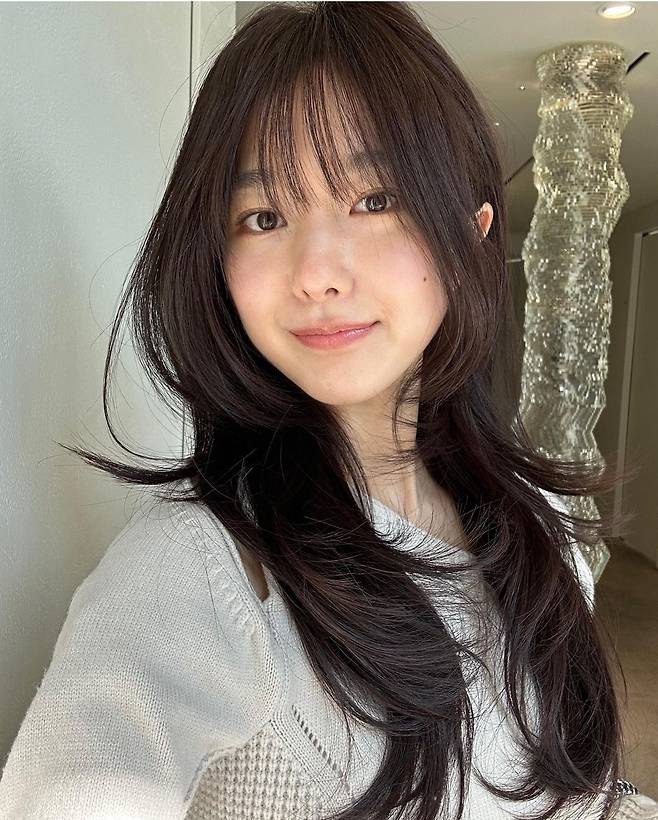 일자로 무겁게 떨어지던 이전 머리와 비교해 보면 훨씬 트렌디하면서도 사랑스럽고 우아한 분위기가 살아난 것을 알 수 있습니다.