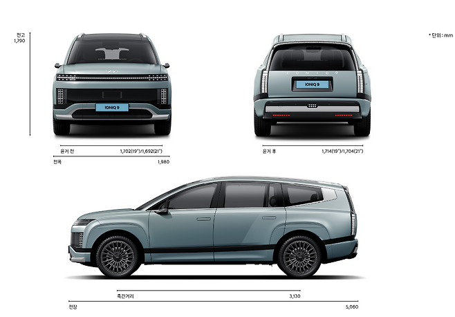 아이오닉9은 공기 역학의 미학을 담은 디자인과 넉넉한 실내 공간을 갖췄다. 공기 흐름을 최적화하고 여유로운 공간을 제공하는 '에어로스테틱(Aerosthetic)' 실루엣을 연출했다. 또 세계 최초로 전면 범퍼 하단에 '듀얼 모션 액티브 에어 플랩(Active Air Flap)'을 탑재해 공기 저항을 최소화했다. 그 결과 대형 전기 SUV 최고 수준 공기저항계수인 0.259cd를 달성했다.