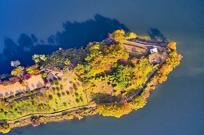 국내에서 가장 아름다운 호수정원으로, 충북 대청호 위에 성체처럼 보이는 곳인데요.