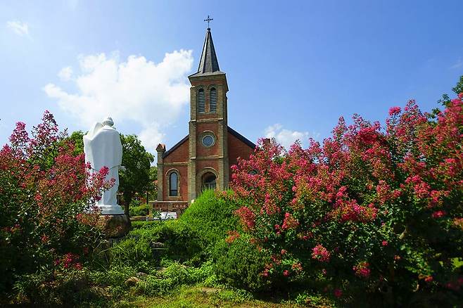 가실성당은 이탈리아 로마 성당이 떠오르는 외관으로, 봄과 여름에 방문하면 좋은 장소입니다. 경북 문화재로 지정되었으며 1924년에 완공되었습니다.