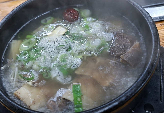 고기 굽는 손님들 사이에서 조용히 인기 폭발 중인 메뉴가 따로 있습니다.바로 진하게 끓인 소한마리 곰탕 한 그릇이 단돈 7,000원!심지어 안에 들어 있는 고기도 아낌없이 푸짐해서,“이 가격에 한우 곰탕이 된다고?”라는 말이 절로 나옵니다.
