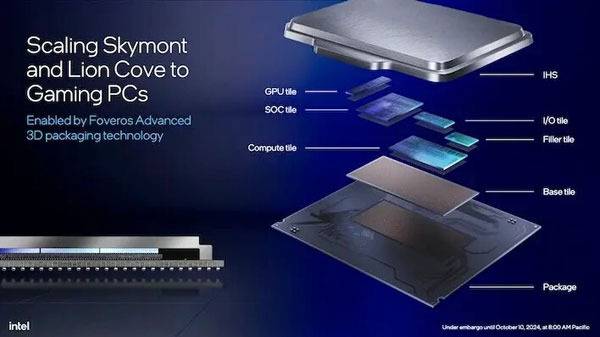 한편 컴퓨트 타일은 인텔 CPU 코어 최초로 외부 파운드리인 TSMC의 N3B 노드를 통해 제조되며, 필러 타일은 전체 타일 구성상 강성을 제공하기 위해 구성된 이름 그대로의 더미 타일이다. 필러 타일 자체는 별도의 기능을 수행하지 않지만, 향후 차세대 제품의 확장성을 위한 예비 공간으로 활용될지 기대된다.