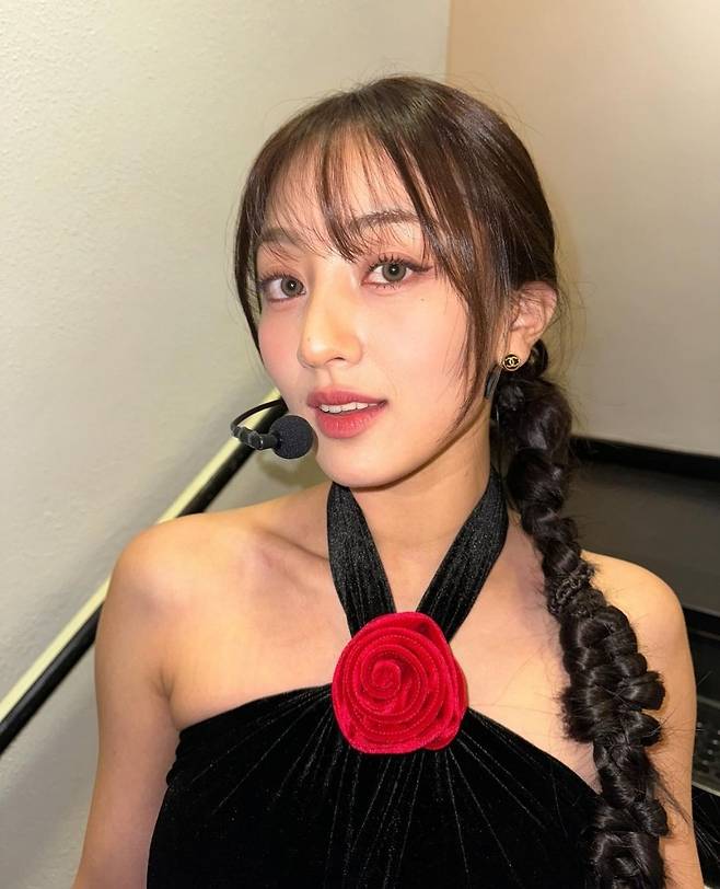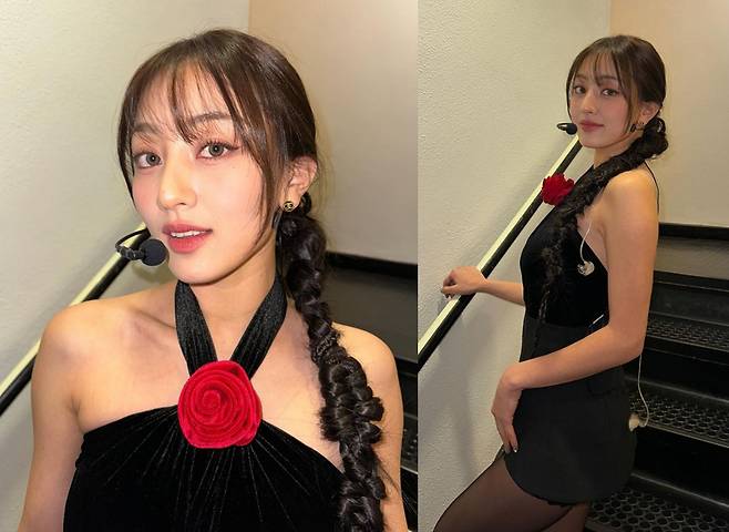 또, 지효가 착용한 원피스는 장미 모양으로 디자인된 장식으로 꾸며져 있어 고급스럽고 아름다운 이미지를 돋보였습니다.
