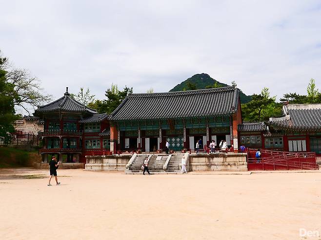 전시 관람을 마치고 갤러리 앞 횡단보도를 건너면 경복궁 안으로 바로 들어갈 수 있다. 이 날 방문한 곳은 경복궁 북쪽에 있는 향원정과 집옥재. 향원정은 고종이 건청궁과 함께 지은 정자, 집옥재는 그가 사용했던 서재다. 이곳은 광화문으로부터 도보로 20분 가량 떨어져 있어 경회루나 근정전에 비해 관광객이 적은 편이다.