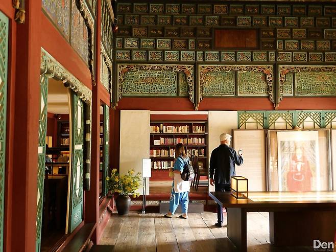 향원정 왼쪽에 자리한 집옥재는 어진과 책을 보관하는 용도의 건물이다. ‘옥처럼 귀한 것을 모은다’는 의미에서 이런 이름이 붙었다. 전돌로 양쪽 벽을 쌓아 올리는 등 청의 건축 양식을 도입해 이국적인 느낌을 주는 곳이기도 하다. 내부에는 조선왕조와 역사에 관한 도서들이 배치돼 있다. 2016년부터 궁궐 속 작은 도서관으로 일반에 개방하고 있어 배치된 책을 집옥재 내에서 자유롭게 읽을 수 있다.