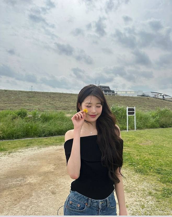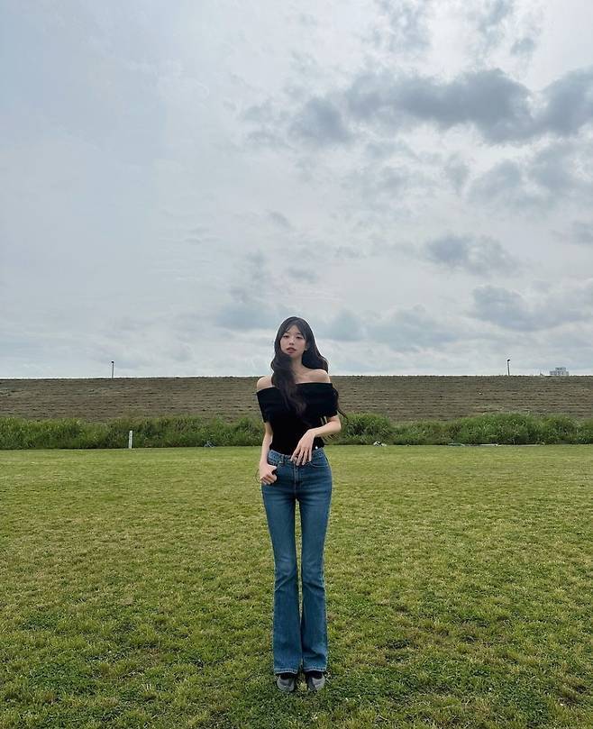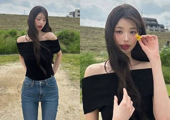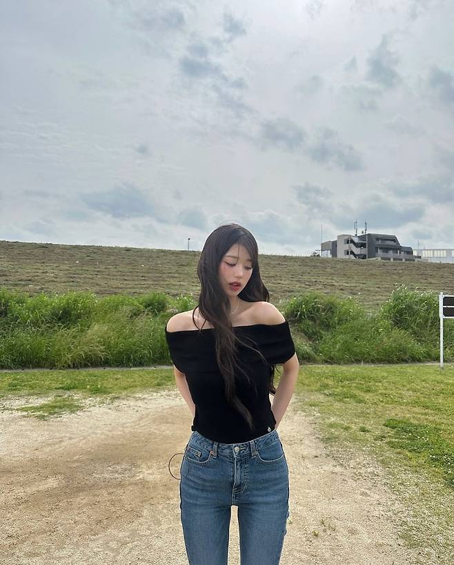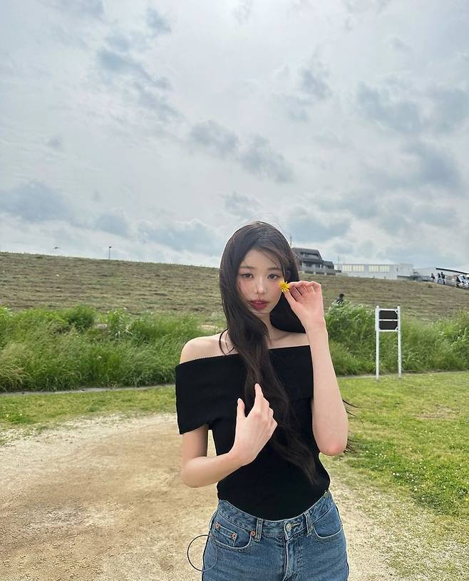 가수 장원영이 내추럴한 긴 머리 웨이브 스타일로 완벽한 비율과 기럭지를 강조해 이목을 끌었습니다.