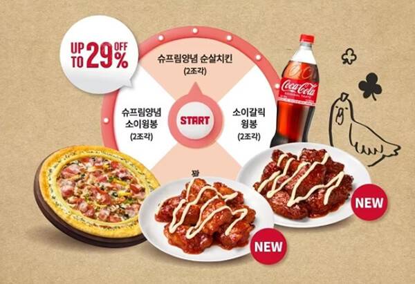 피자헛은 피자와 함께 즐기기 좋은 치킨 사이드 메뉴 4종을 새롭게 출시했다. 신제품은 다양한 양념과 부위로 구성돼 한 끼 식사는 물론 간식으로도 즐기기 좋다. 새롭게 선보인 메뉴는 ‘소이갈릭 윙봉’, ‘슈프림양념 소이윙봉’, ‘슈프림양념 순살치킨’, ‘팝콘치킨’ 등 4종이다. 새로운 치킨 사이드 4종은 오븐구이부터 바삭한 튀김까지 취향에 따라 다양하게 즐길 수 있는 것이 특징이다. 대표 메뉴로 꼽을 수 있는 팝콘치킨의 매장 판매가는 5,800원이다.