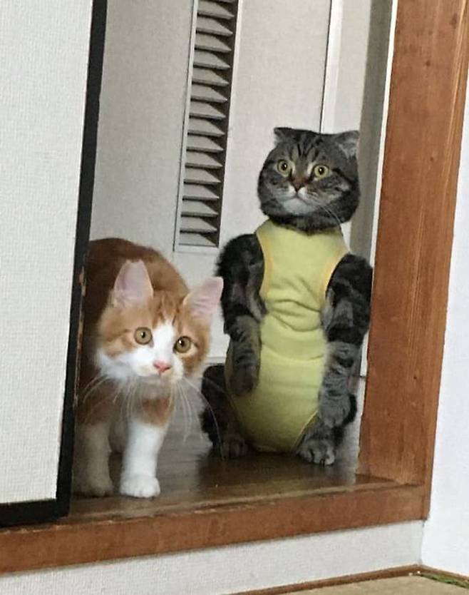 공개된 사진 속에는 수술을 한 직후 수술 부위를 핥아서 벌어지는 일을 피하기 위해 집사가 새로 구입한 옷을 입은 고양이 모습이 담겨 있었죠.
