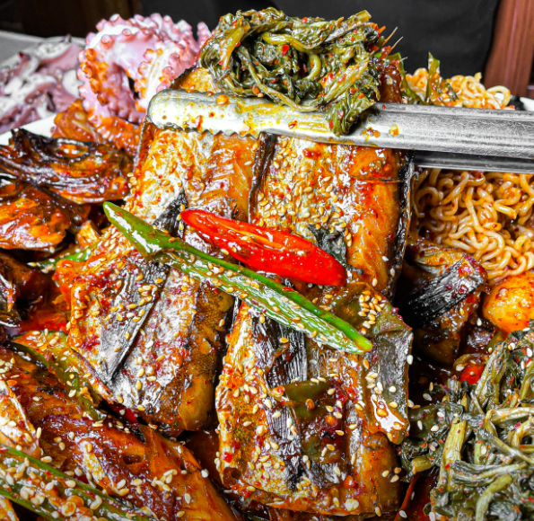 ✅ 모듬생선구이 –고등어, 가자미, 열기, 임연수 등 푸짐하게 한 접시에!기름기 쫙 빠진 구이에 밥 한 숟갈 올리면 그야말로 정겨운 집밥.