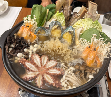 ✅ 황제전골 –문어, 전복, 돼지갈비, 능이버섯, 인삼까지…이 조합 실화인가요? 국물 한 숟갈 떠먹는 순간 깊은 맛에 감탄하게 돼요.특별한 날 부모님 모시고 오기에도 딱 좋습니다.