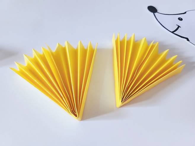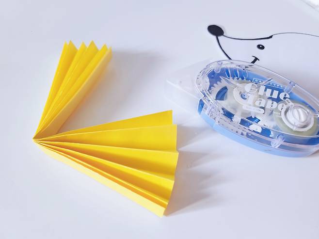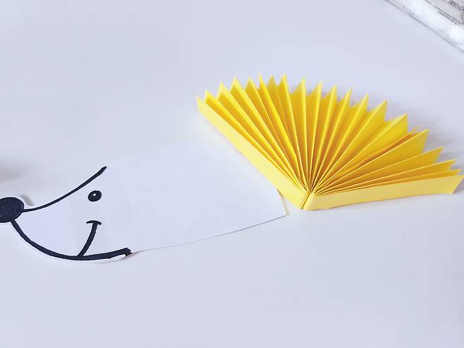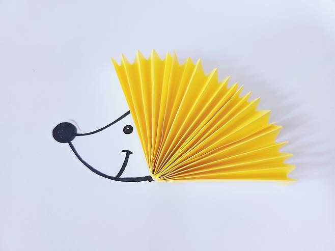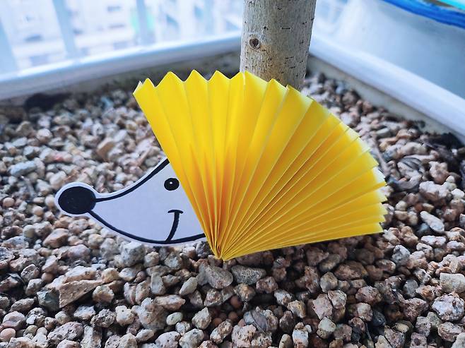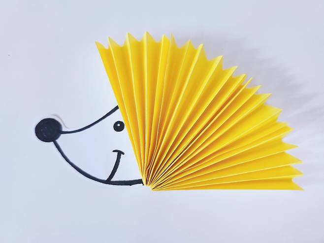 그다음 고슴도치의 가시가 될 색종이를 준비해주세요. 저는 밝고 귀여운 이미지를 주기 위해 노란색을 선택했어요.