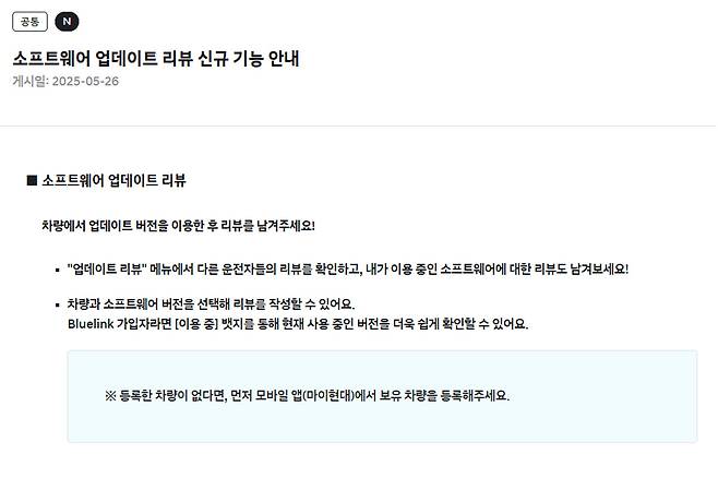 현대차가 운전자들의 불만을 정면으로 마주하기 시작했다. 최근 현대차 공식 업데이트 사이트에 인포테인먼트 소프트웨어 업데이트 피드백 전용 게시판이 신설되면서, 그간 불편을 겪은 사용자들이 직접 의견을 전달할 수 있는 통로가 마련됐다. 이전까지는 고객센터나 커뮤니티를 통한 간접 전달이 대부분이었기에, 이는 제조사가 사용자 경험을 직접 수집하겠다는 명확한 의지로 읽힌다.