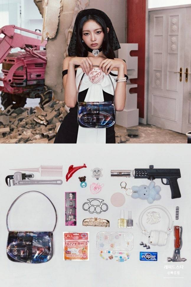 특히 멤버들의 개성을 살린 패션과 가방 속 독특한 아이템들이 눈길을 끌었는데요. 그중에서도 장원영의 가방에서 살짝 보이는 손도끼는 팬들의 호기심을 자극하며 ‘예쁘지만 위험한 커버 걸’ 콘셉트를 완벽하게 표현했습니다. 이러한 독특한 스타일링은 아이브의 시크하고 도발적인 매력을 강조하며 글로벌 팬들의 시선을 사로잡았습니다.