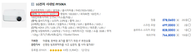 빔프로젝터의 밝기는 가장 중요한 스펙인데요, 표기방식은 '루멘'과 '안시루멘'이 있습니다.