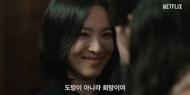 여정과 현남에게는 서로의 손을 잡아주고 눈을 마주치고 있으며,