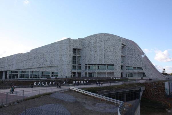 아이젠만은 외벽 마감재로 갈리시아산 화강암 대신 브라질산 규암을 선택했다. 지역 정체성을 기념한다는 프로젝트에서 지역 석재가 배제된 것이다. 이유는 설명되지 않았다. 갈리시아 감사원은 나중에 석재 공급업체가 국민당 소속 시장의 가족 회사였으며, 해당 채석장이 무허가 상태였다는 사실을 밝혀냈다.