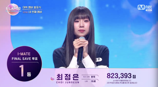 아이메이트 팬 투표 1등은 최정은이 차지했다. 그는 “1등으로 시작했는데 많은 힘듦과 걱정이 컸다. 파이널 마지막까지 1등이라는 순위로 데뷔할 수 있게 해주셔서 너무너무 감사하다. 도와주신 프로듀서 덕분에 많은 성장을 했다. 23명 친구들과 함께 추억을 보내서 행복했다”며 기쁨의 눈물을 흘렸다.