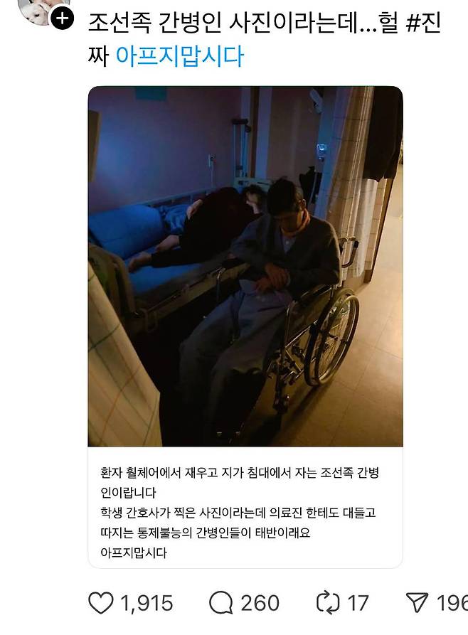 그리고 보호자가 간식 사오거나 영통하면 그때만 잘해주고, 환자한테는 구박 하는거 실제로 봄…ㅠㅠ