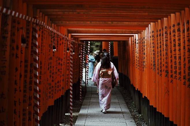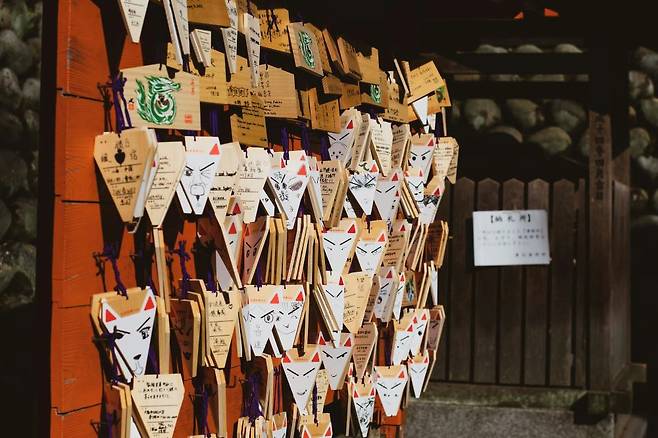 붉은 토리이가 끝없이 이어지는 신비로운 길, 교토의 후시미이나리 신사. 이곳을 방문한 사람이라면 누구나 앙증맞은 여우 모양의 나무 소원지에 간절한 염원을 담아 걸어두었을 겁니다.