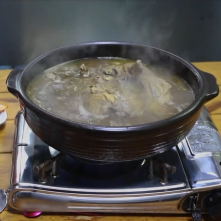 무려 10가지 이상의 한약재를 넣고 1시간 이상 푹 끓인 백숙은 국물에서부터 이미 건강해지는 기분이 듭니다.