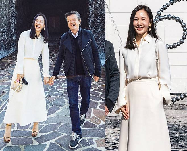 여기에 박주미는 아이보리 색상의 롱스커트를 매치해 우아하고 차분한 분위기를 자아냈습니다.