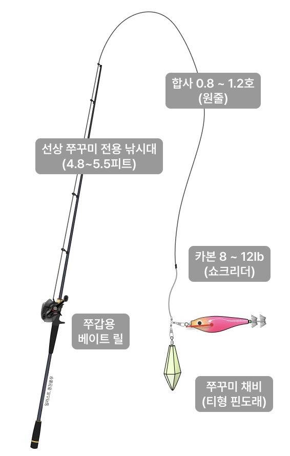 선상용 쭈꾸미 갑오징어 전용 낚시대와 릴