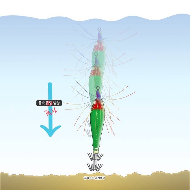 서서 가라앉는 형태의 틴셀 에기보다는