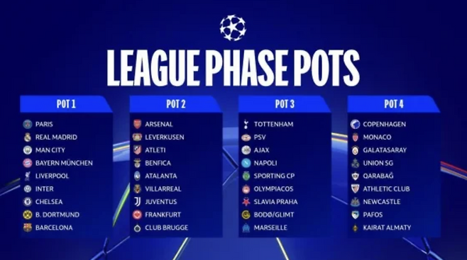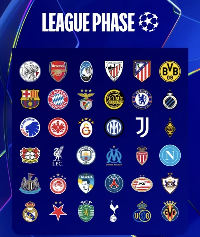 지난 시즌부터 도입된 리그 페이즈 방식에 따라, 각 팀은 홈·원정 4경기씩 총 8경기를 치릅니다. 이후 36개 팀이 단일 리그 순위로 매겨져 상위 16강 진출팀이 결정됩니다.