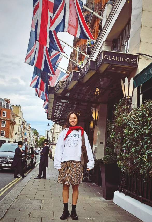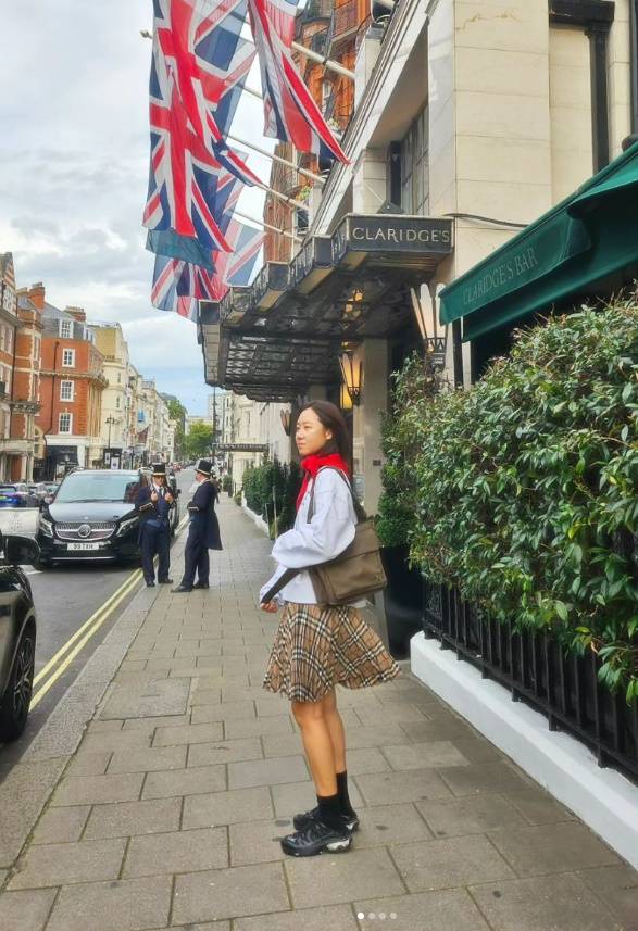 앞서 그는 지난 16일 영국 국기가 걸려있는 호텔 앞에서 포즈를 취하기도 했다.