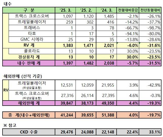 특히 해외 시장에서 쉐보레 트랙스 크로스오버와 트레일블레이저가 실적을 주도했다. 쉐보레 트랙스 크로스오버(파생모델 포함)는 27,316대가 판매되며 해외 판매의 절대적인 비중을 차지했으며, 쉐보레 트레일블레이저(파생모델 포함)는 12,531대가 판매됐다.