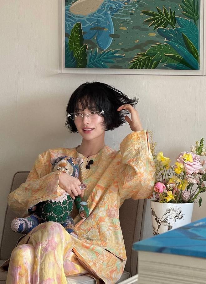 공개한 사진과 영상에서 나나는 짧은 헤어 스타일에 안경을 쓰고 화려한 꽃무늬 디자인의 원피스룩으로 발랄하면서도 러블리한 스타일을 선보였다.