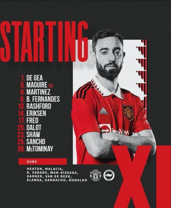 경기를 앞두고 양 팀의 선발 명단이 공개됐다. 맨유는 래쉬포드, 산초, 브루노, 에릭센, 프레드, 맥토미니, 쇼, 마르티네스, 매과이어, 달롯, 데 헤아가 선발 출격한다. 호날두는 교체 명단에 이름을 올렸다.