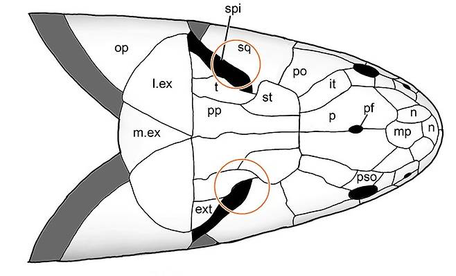 아울러 연구팀은 신종의 정수리 숨구멍만큼이나 눈여겨볼 부분이 데본기 중기와 후기에 나타난 사지형어류(tetrapodomorpha)라고 강조했다.