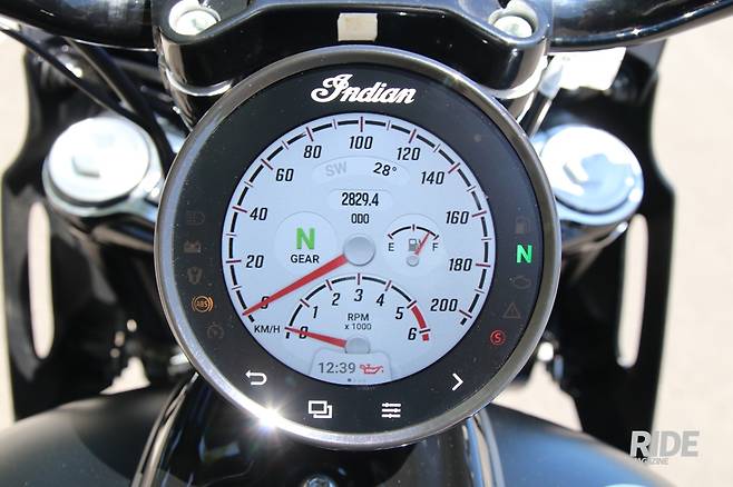 계기판은 4인치 원형의 터치스크린으로, 라이드 커맨드 시스템이 내장되어 차량 관련 정보는 물론이고 스마트폰과 블루투스 헤드셋 연동을 통한 음악 재생, 전화 송수신 등이 가능하다. 내비게이션은 탑재되어 있으나 국내 법규 등의 문제로 사용은 불가능하다. 스마트폰 연동 시 이동 중 충전하며 사용할 수 있도록 USB 충전 포트도 갖춰져 있는데, 엔진 앞쪽 프레임 사이에 커버에 덮여 숨어있으니 잘 찾아봐야 한다. 그리고 스마트키가 적용되어 주머니에서 키를 꺼내지 않고도 시동을 걸 수 있어 편리하다.