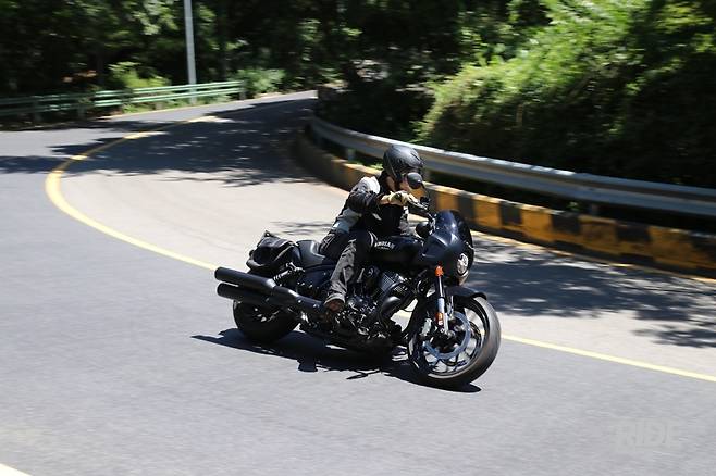 그래도 이런 경쾌한 움직임이라면 와인딩 코스를 경험해보지 않을 수 없다. 짧은 코너가 이어지는 구간에서 감속 후 머리를 돌려 코너를 빠져나가 재가속하는 과정이 물 흐르듯 자연스럽다. 특히 코너를 빠져나오며 부드럽게 스로틀 레버를 감아주면 자연스럽게 차체가 일어서며 다음 코너를 빠르게 준비할 수 있다. 인디언이 전통적인 크루저만 만드는 것이 아니라 FTR 같은 모델도 만들고 있다는 점을 생각하면 이런 스포츠성 강한 크루저를 선보이는 것도 그리 어색한 일은 아니라는 생각이다.