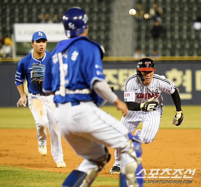 26일 잠실구장에서 열린 LG 트윈스와 삼성 라이온즈의 경기. 4회말 무사 1루 LG 오지환이 견제에 걸려 아웃되고 있다. 잠실=박재만 기자pjm@sportschosun.com/2024.03.26/