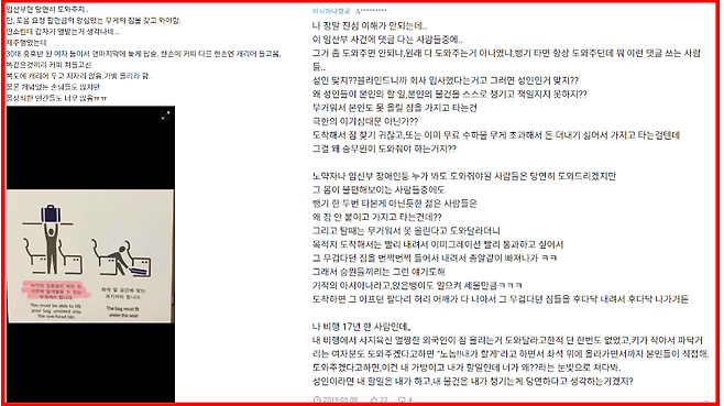 오늘은 한 커뮤니티에 올라온 글을 소개하려고 합니다. 임산부 승객이 승무원에게 짐을 올려달라고 부탁했다는 내용의 글이었는데요. 이 글이 업로드되고 네티즌들의 반응 또한 다양했습니다. 그렇다면 한동안 커뮤니티를 떠들썩하게 했던 글의 상황은 어땠을지 함께 알아보도록 하겠습니다.