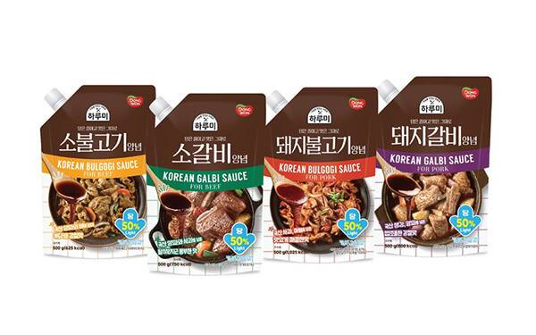 동원F&B는 당 함량을 50% 이상 낮춘 요리 양념 전문 브랜드 ‘하루미’를 새롭게 선보였다. 첫 제품으로는 소갈비, 소불고기, 돼지갈비, 돼지불고기 등 고기양념 4종을 내놨다. 양파, 생강, 사과 등 국산 자연재료를 넣었으며, 대체당인 알룰로스 등으로 구성된 디슈가를 최적 비율로 배합해 기존 고기양념 상위 3개 제품보다 당 함량을 절반 이상으로 줄인 것이 특징이다. 대표 제품인 소불고기 양념의 판매가는 4,980원이다.