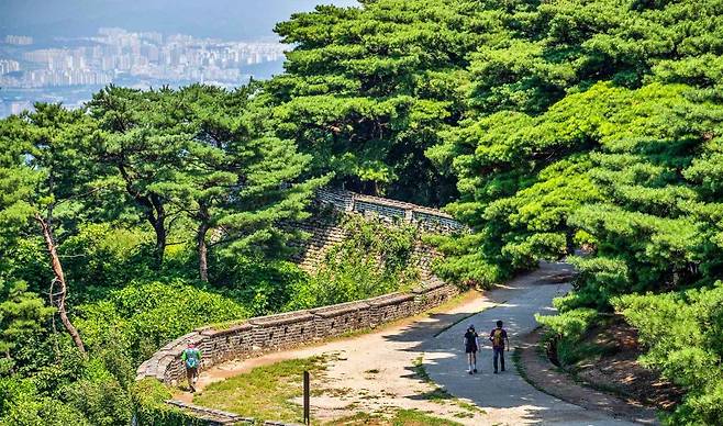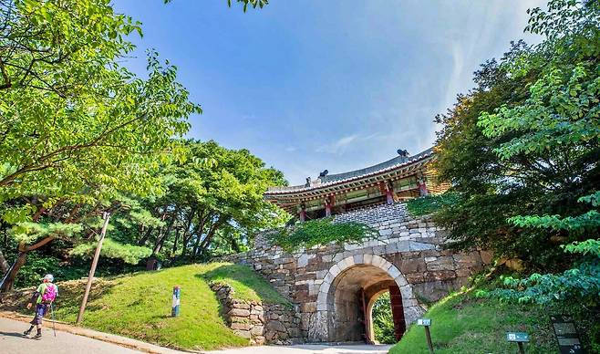 가장 대중적인 1코스 ‘장수의 길’은 완만해 초보자도 쉽게 걸을 수 있으며, 전승문·우익문·지화문과 같은 성문과 수어장대를 만나볼 수 있다.