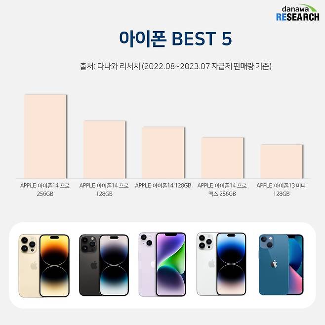 ▲ 다나와 데이터상으로 자급제 기준 아이폰 14 프로 라인업이 인기 있었다.