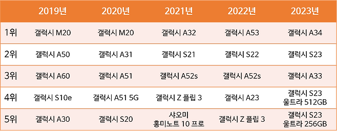 에디터 正 다나와 판매 데이터에 따르면 연도별 인기 제품에서 변화가 있습니다. 시간이 갈수록 보급형 제품보다 플래그십 제품 비중이 높아지는 것 인데요. 폰 CM이 보시기에 소비자의 핸드폰 구매 트렌드가 변화하고 있다는 것을 체감하고 있나요?
