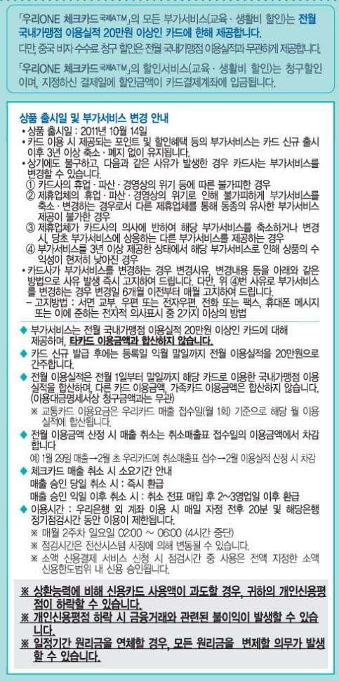 (ExK) 우리 ONE 체크카드 신규/추가/갱신발급 중단 안내
