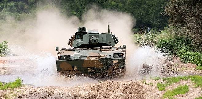 K21-105 경전차는 기존의 K21 장갑차에 벨기에 코커릴 사의 105mm 포탑을 탑재해 화력을 크게 증강시킨 경전차인데요.