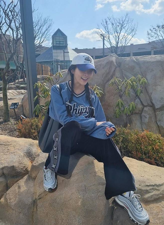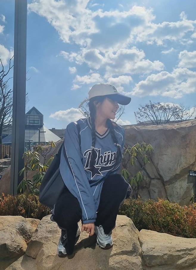 배우 정유미가 스포츠 유니폼의 일상 볼록코어룩으로 스포츠에 대한 진심을 드러냈다.