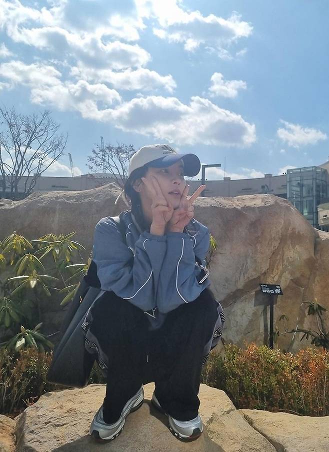 공개한 사진에서 정유미는 양갈래로 땋은 헤어 스타일과 볼캡에 농구복으로 보이는 상의와 조거팬츠의 블록코어룩으로 스포츠 매니아의 모습을 선보였다.