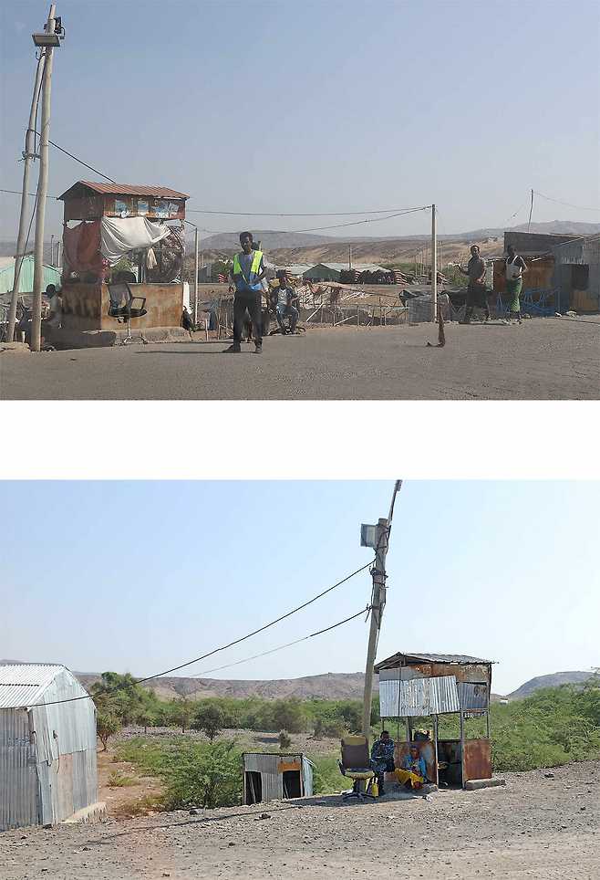 각 부족들이 자기 영역을 지키기 위해 줄을 매달아 놓고 통행하는 자동차를 체크한다.