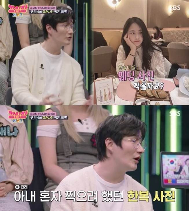 돌아온 아내의 대답은 무척이나 놀라웠으며, 그렇게 아내의 손에 이끌려 따라간 곳에서 허동원은 사귀기로 한 당일에 졸지에 웨딩화보를 찍게 됩니다. 평소 한복을 좋아하던 아내는 원래 혼자서 한복 화보를 남길 예정이었다고 하는데요.